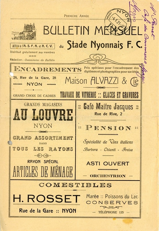Bulletin du FC Stade Nyonnais, 1966 – No 1 – Dépôt – Archives communales de Nyon