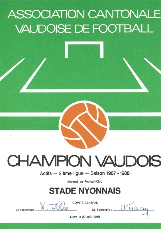 Diplôme de champion vaudois de 2ème Ligue (saison 1987-1988), 1988 – Dépôt – Archives communales de Nyon