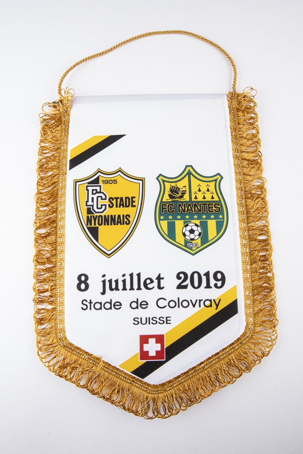 Fanion réalisé à l’occasion du match amical du 8 juillet 2019 entre le FC Stade Nyonnais et le FC Nantes – Dépôt – Château de Nyon, Musée historique