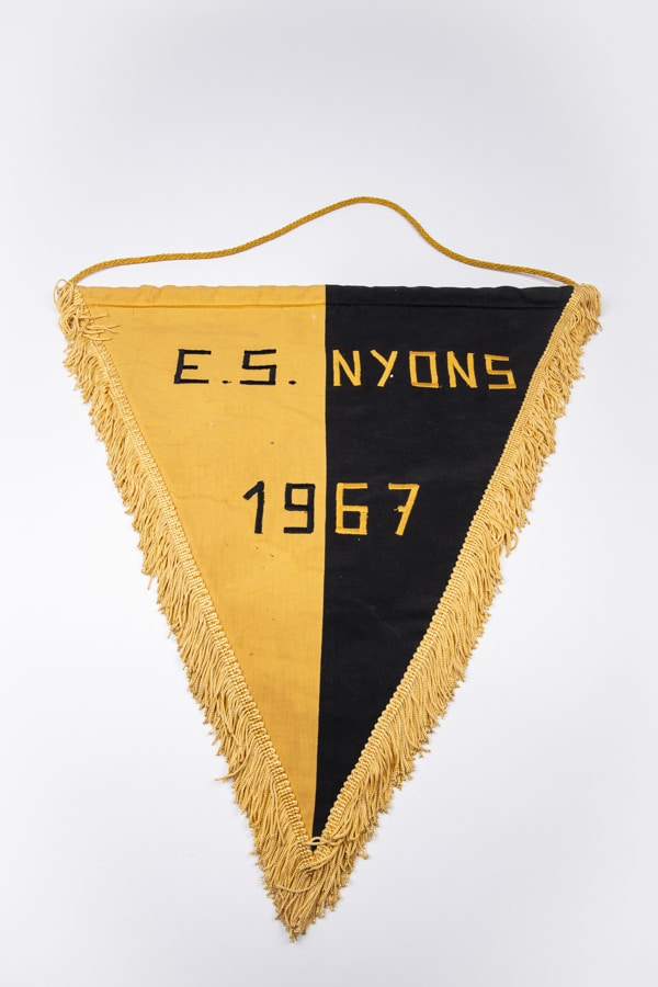 Grand Fanion de l’Etoile Sportive Nyons (France) offert au Stade Nyonnais à l’occasion de l’inauguration du stade de Marens en août 1967. A cette occasion, l’ES Nyons a disputé un match face aux juniors A du FC Stade Nyonnais – Dépôt – Château de Nyon, Musée historique