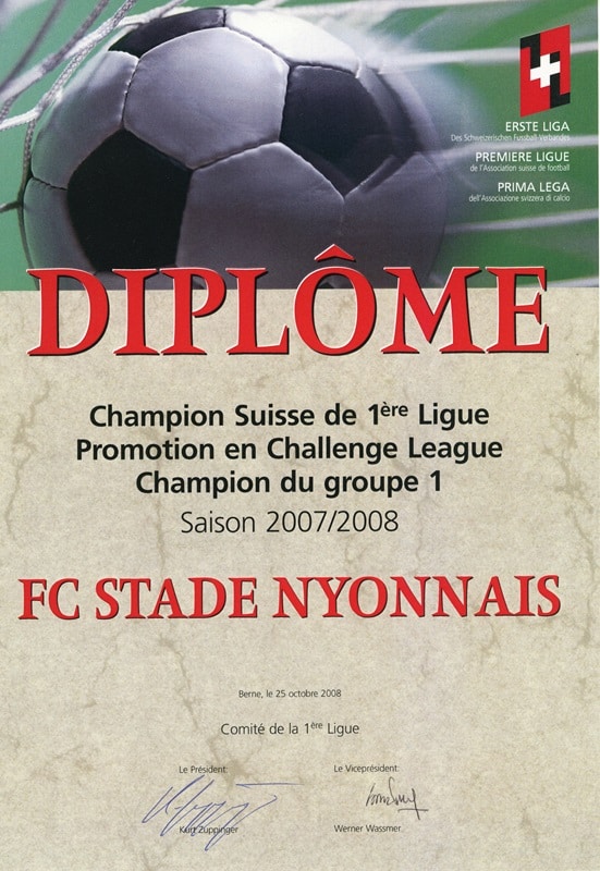 Médaille de Champion Suisse de 1ère Ligue offerte par la 1ère Ligue aux joueurs (saison 1997-1998) – Dépôt – Château de Nyon, Musée historique