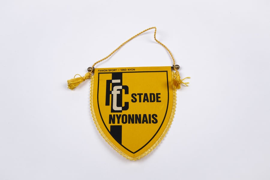 Petit fanion du FC Stade Nyonnais. Fanion réalisé par la société Fanion Sport – 1260 Nyon (années 80) – Dépôt – Château de Nyon, Musée historique
