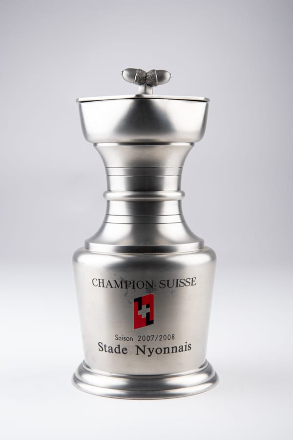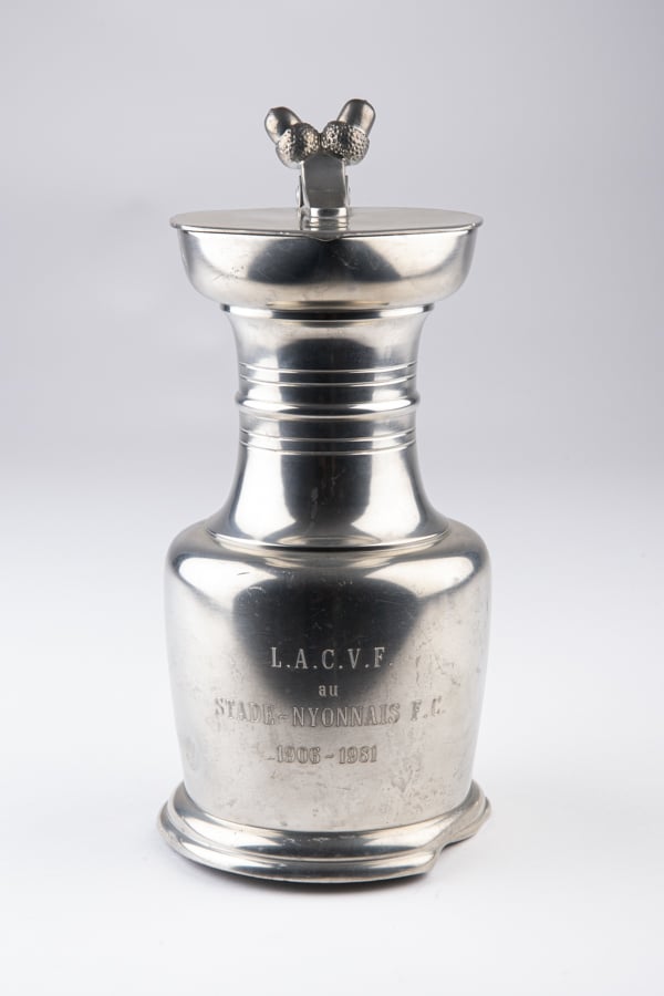 Channe en étain offerte au champion suisse de 1ère Ligue, saison 2007-2008, promotion en Challenge League – Dépôt – Château de Nyon, Musée historique