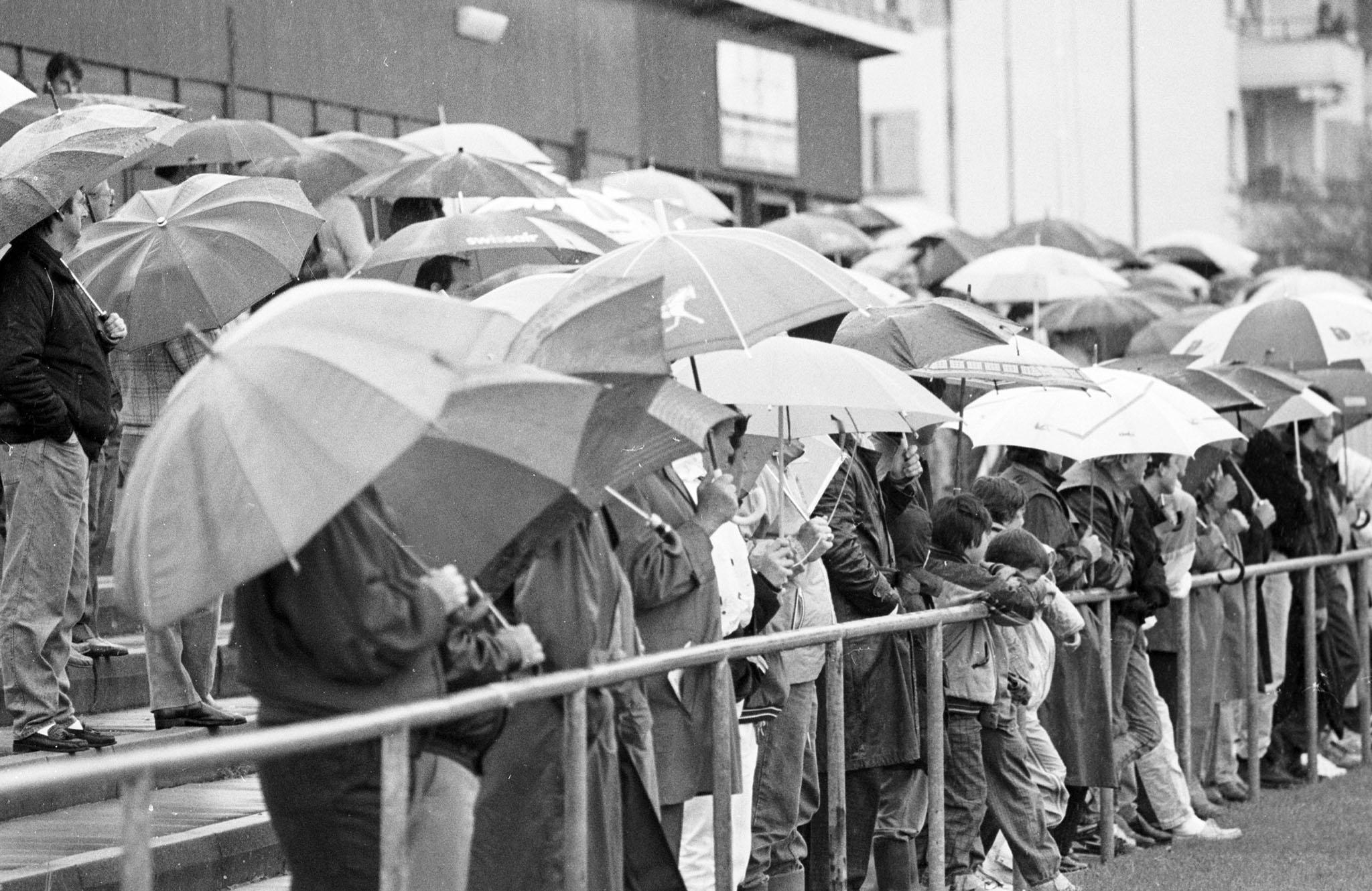 Président du Stade Nyonnais de 1959 à 1971, Gilbert Prodolliet a marqué le club de son empreinte. Comme joueur tout d’abord puisqu’il s’aligna au fil des ans dans toutes les catégories de jeu, puis comme dirigeant puisque sa présidence est la plus longue de l’histoire du club. Il se souvient : « Plan Wahlen aidant, nous avions dû quitter le terrain de la route d’Eysins durant la deuxième guerre mondiale. Le Stade retrouvait une fois encore Perdtemps où une aire de jeu était tracée parallèlement au lac, les buts se trouvant à proximité de la grande salle et de l’Office du tourisme actuel. Les distractions étant rares pendant le conflit, les curieux étaient nombreux et il fallut entourer le terrain d’une palissade de toile pour limiter le nombre des resquilleurs. Les vestiaires, eux, se trouvaient à l’hôtel des Alpes. A l’époque, on aimait bien le terrain de la route d’Eysins. Son avantage ? Il n’était pas nécessaire d’y tondre le gazon, le travail étant fait par les moutons qu’y faisait paître M. Perrin, le propriétaire du terrain ».